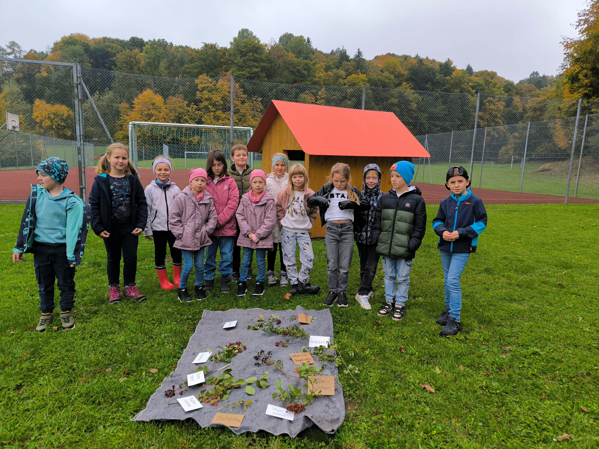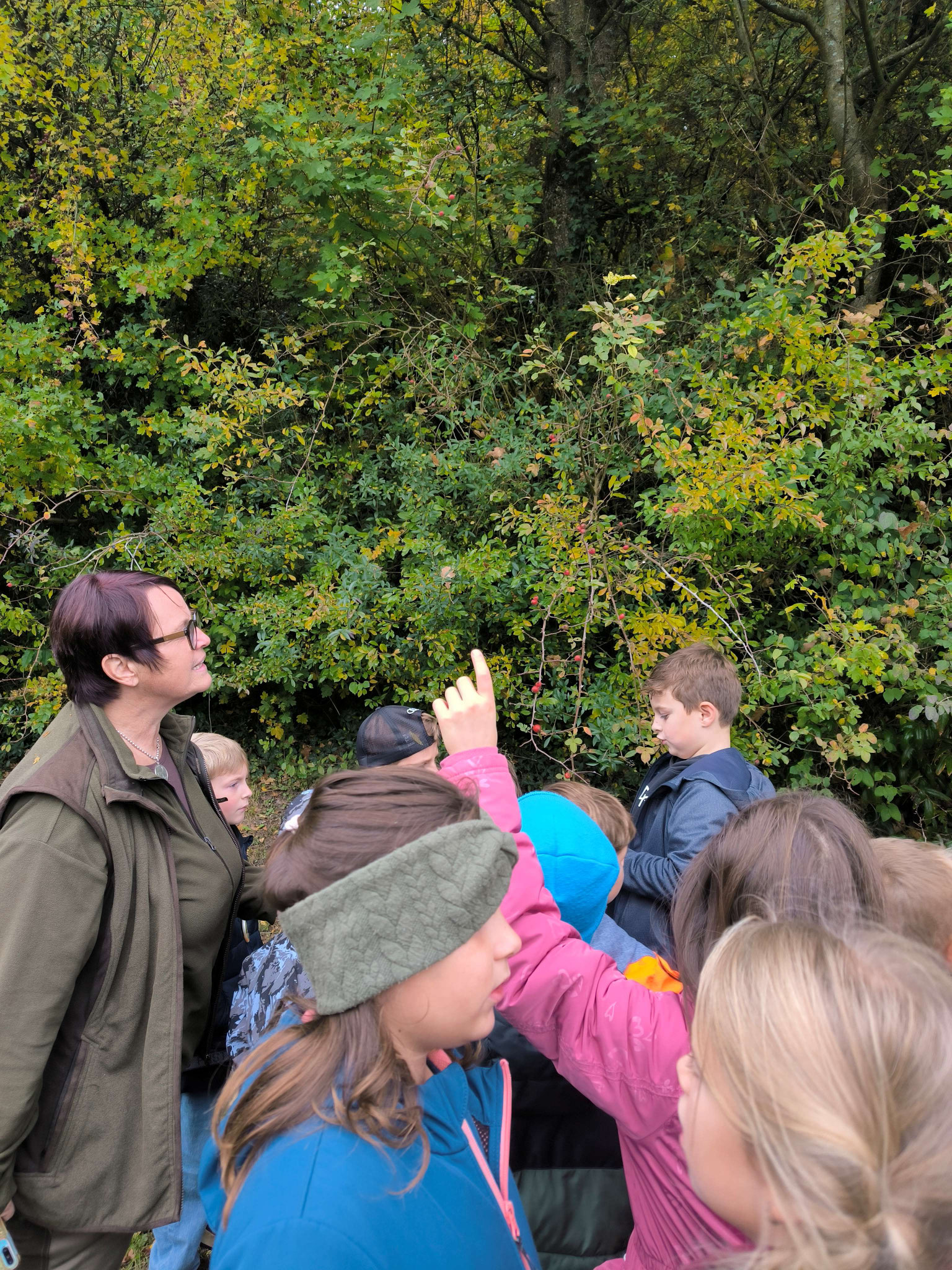 Nach der Heckenbegehung bestimmten die Kinder gemeinsam mit Frau Brom verschiedene Heckensträucher und wurden im anschließenden Heckenquiz über ihr Wissen geprüft.