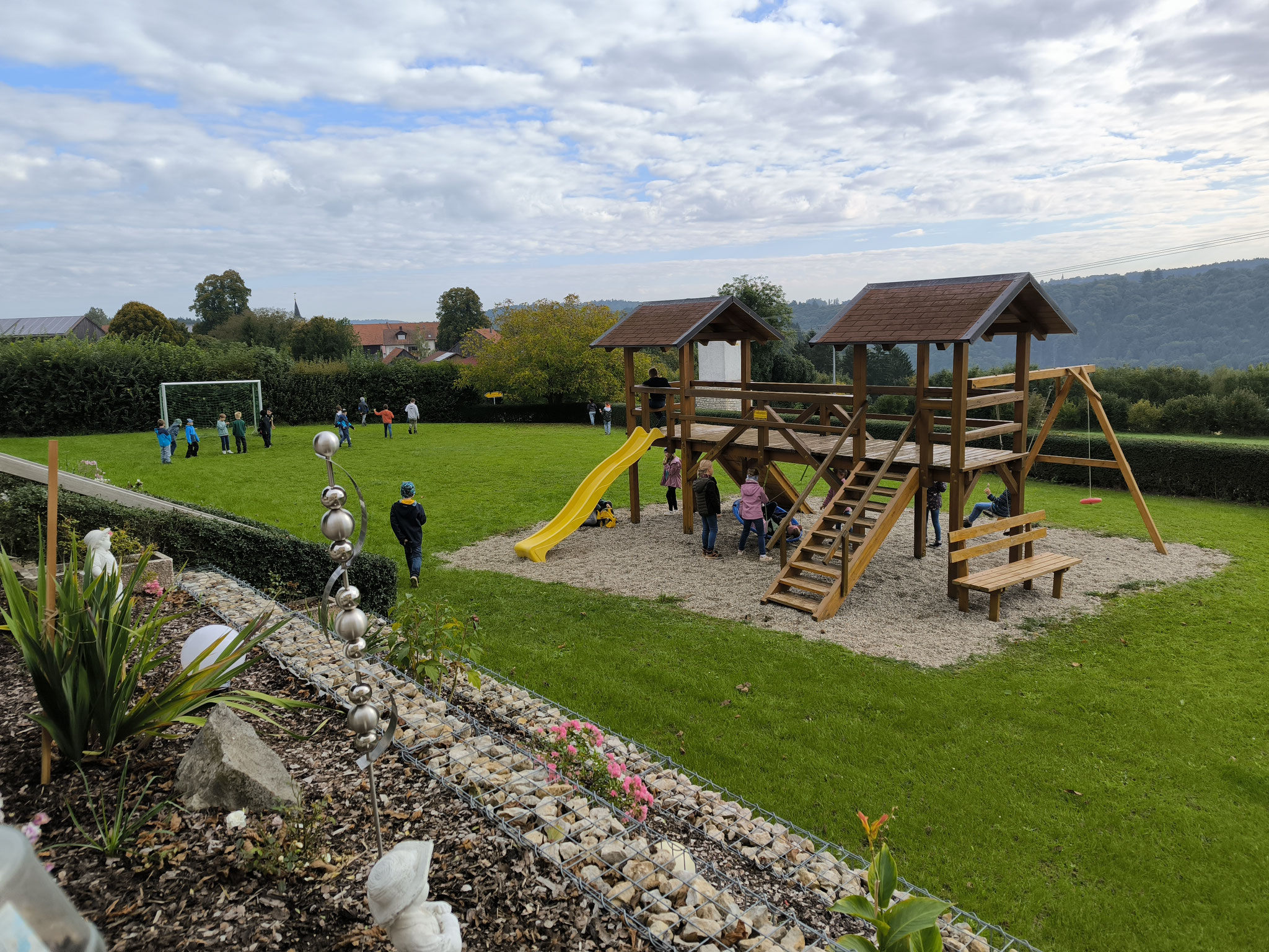 Auf der schönen Terrasse der Gaststätte Schneeberger konnten die Wanderer Brotzeit machen und sich anschließend am zugehörigen Spielplatz vergnügen.